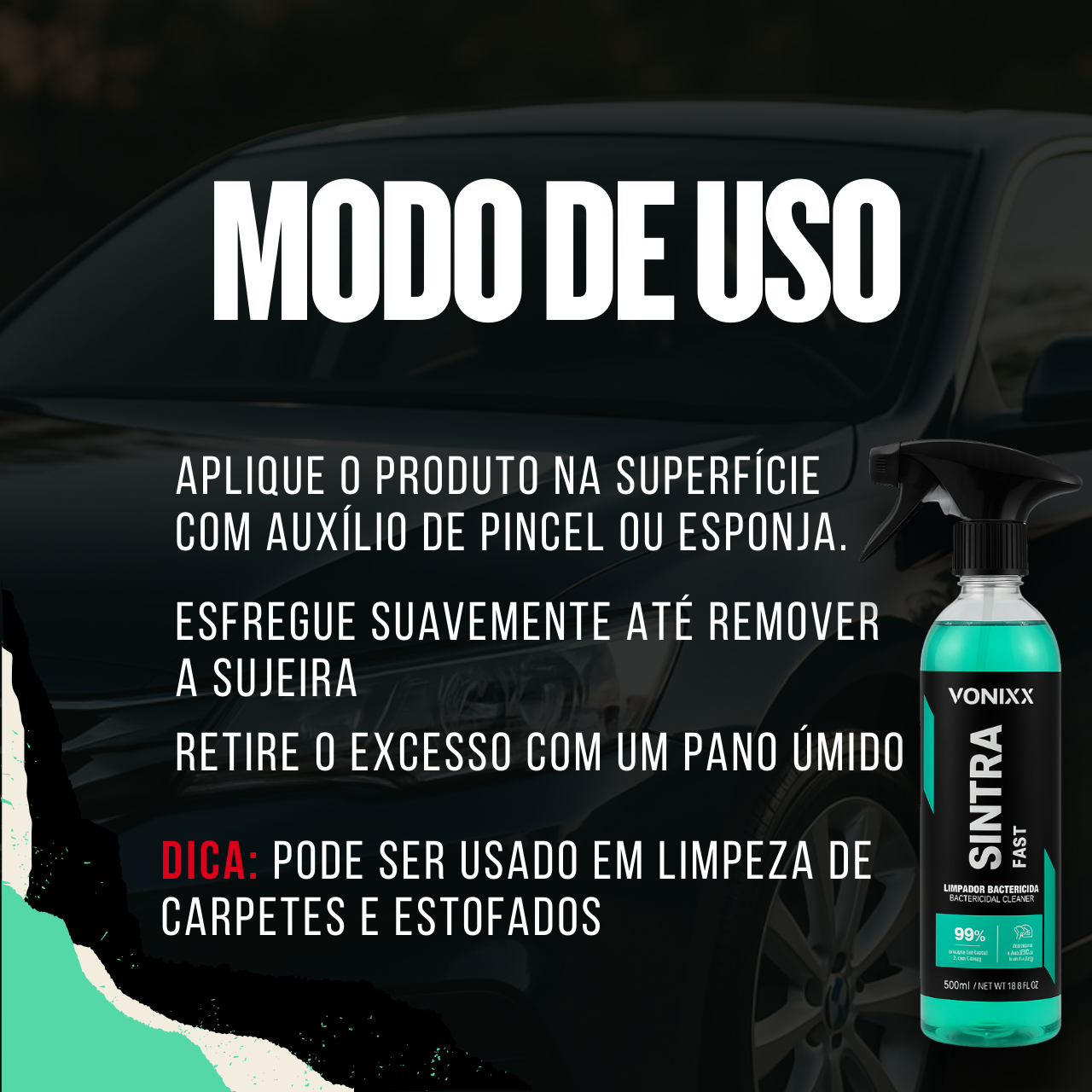 O Vonixx Sintra Fast é o aliado ideal para quem busca praticidade e eficiência na limpeza interna do veículo. Desenvolvido para uso rápido, ele remove sujeiras leves de plásticos, vinil e partes internas sem necessidade de enxágue, deixando a superfície limpa, uniforme e com aspecto renovado. Sua fórmula balanceada proporciona um resultado seguro e eficaz, sem agredir os materiais.