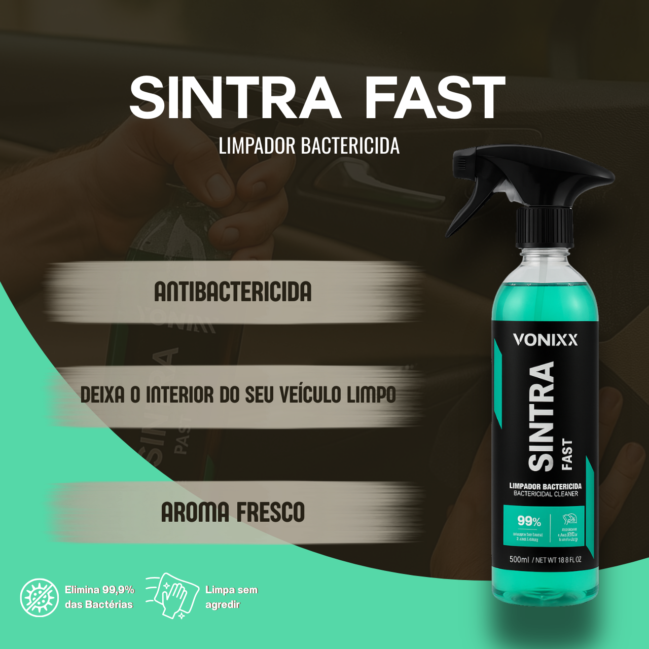 Vonixx Sintra Fast: limpador interno rápido e eficiente para plásticos, vinil e superfícies internas. Remove sujeiras leves sem enxágue e deixa acabamento uniforme. Compre Agora!