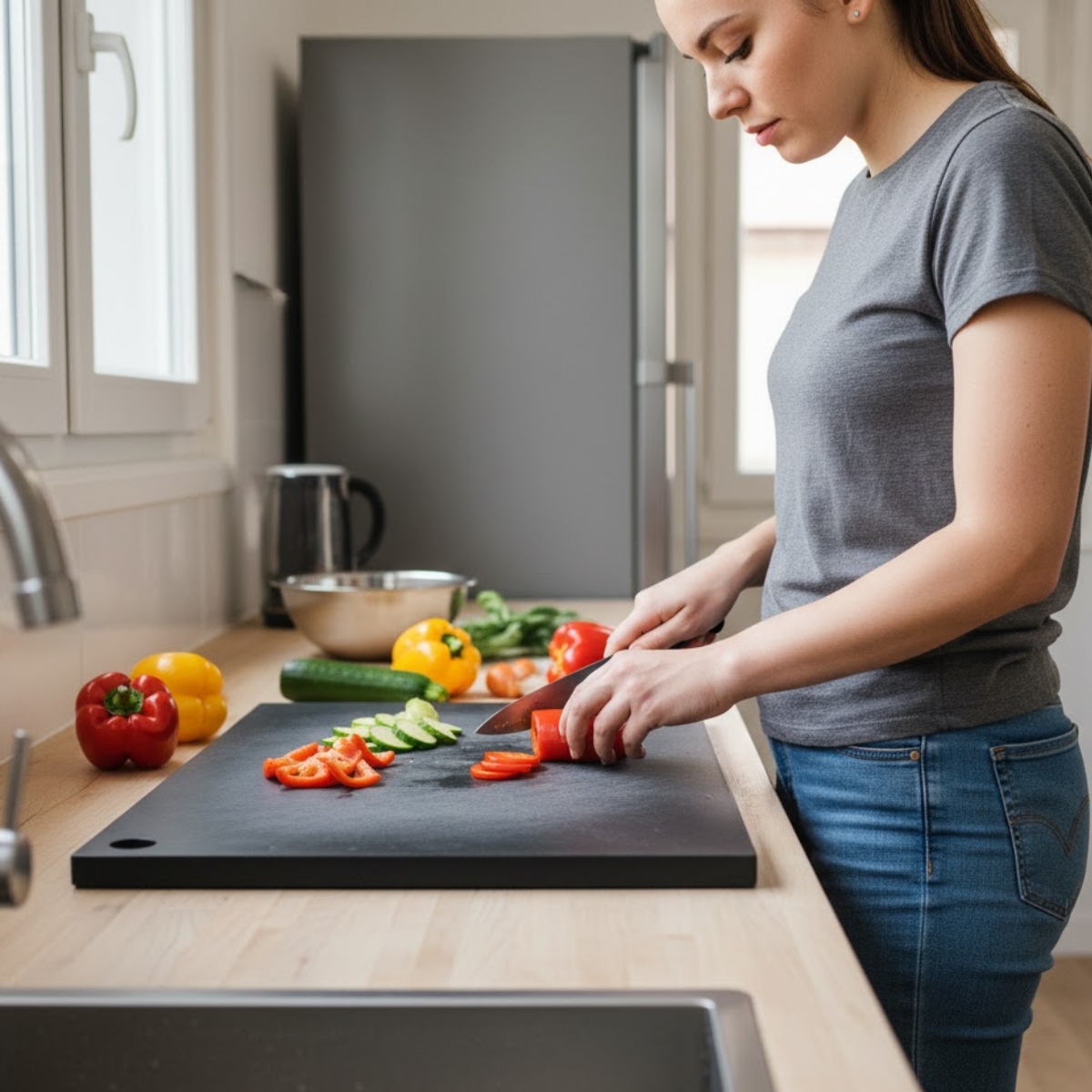 Cuidado com Suas Facas: Diferente de outras superfícies, o Polietileno PEAD preserva o fio das suas facas, garantindo que elas mantenham o corte por muito mais tempo. Realize seus preparos com a confiança de que suas ferramentas estarão sempre afiadas.