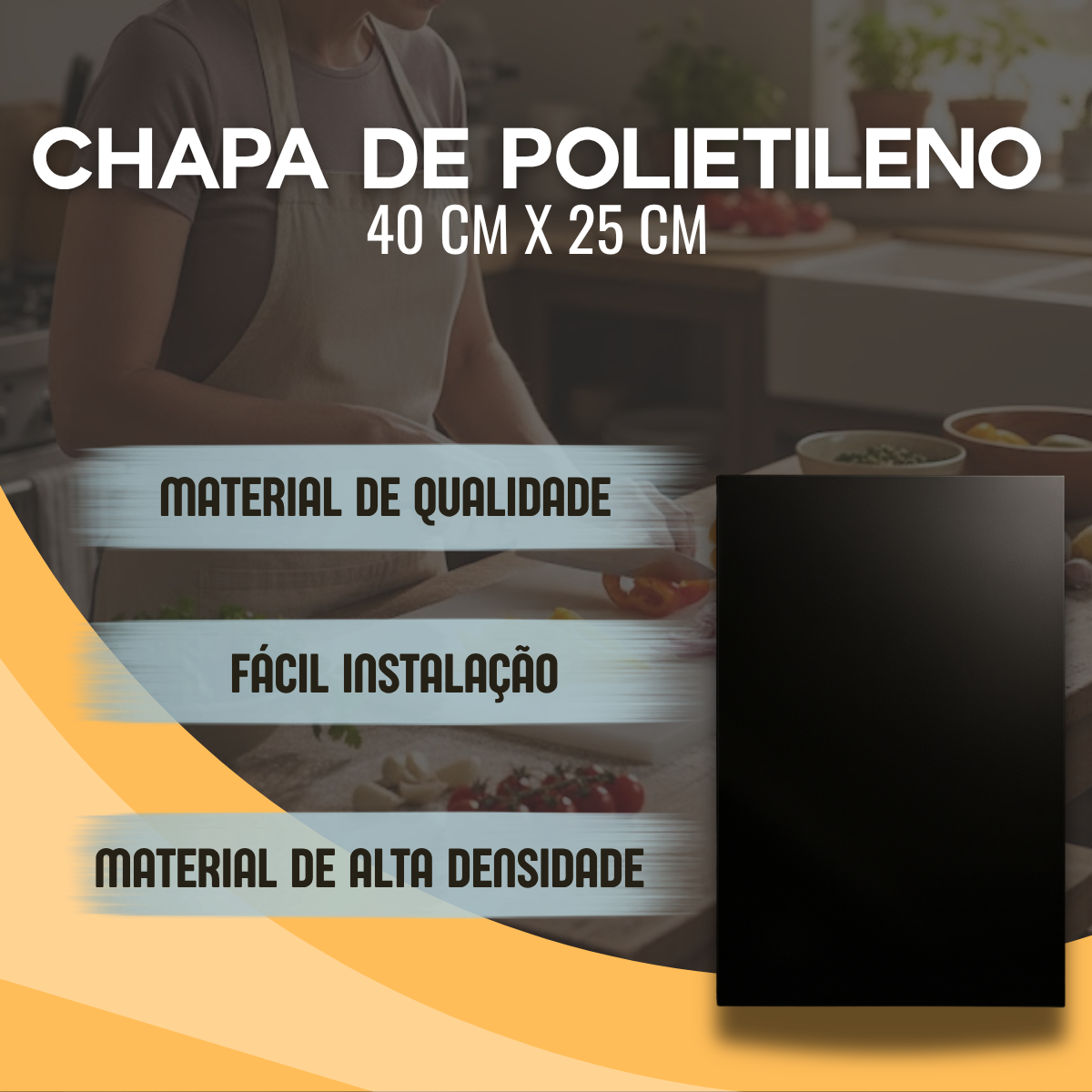 Qualidade e Segurança Atóxica: Fabricada com Polietileno PEAD 100% atóxico e puro, nossa chapa garante que nenhum elemento nocivo seja transferido para seus alimentos. Sua superfície lisa é especialmente projetada para não propagar bactérias e fungos, assegurando um ambiente de trabalho higiênico e seguro para você e seus clientes.