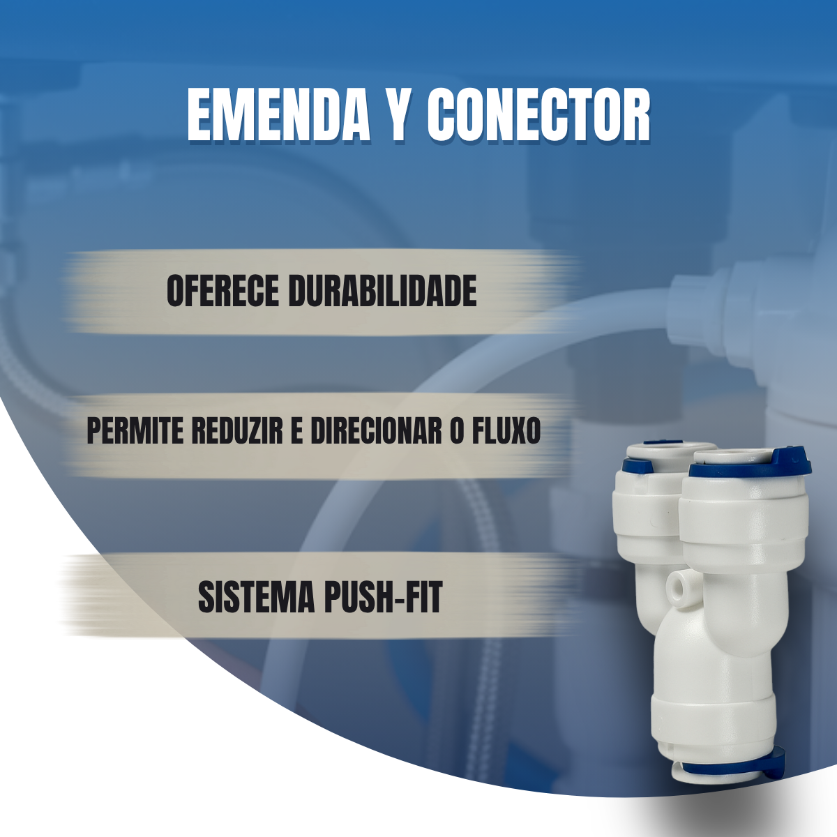 Emenda em Y 3/8 é a solução prática e segura para dividir uma linha de água em duas saídas sem perder pressão, ideal para instalações de filtros, purificadores, geladeiras com ice maker, bebedouros e sistemas de osmose reversa. Com sistema de engate rápido (push-fit), a montagem é simples: basta inserir a mangueira até o final e o travamento ocorre automaticamente, garantindo vedação confiável por meio de O-ring de qualidade.