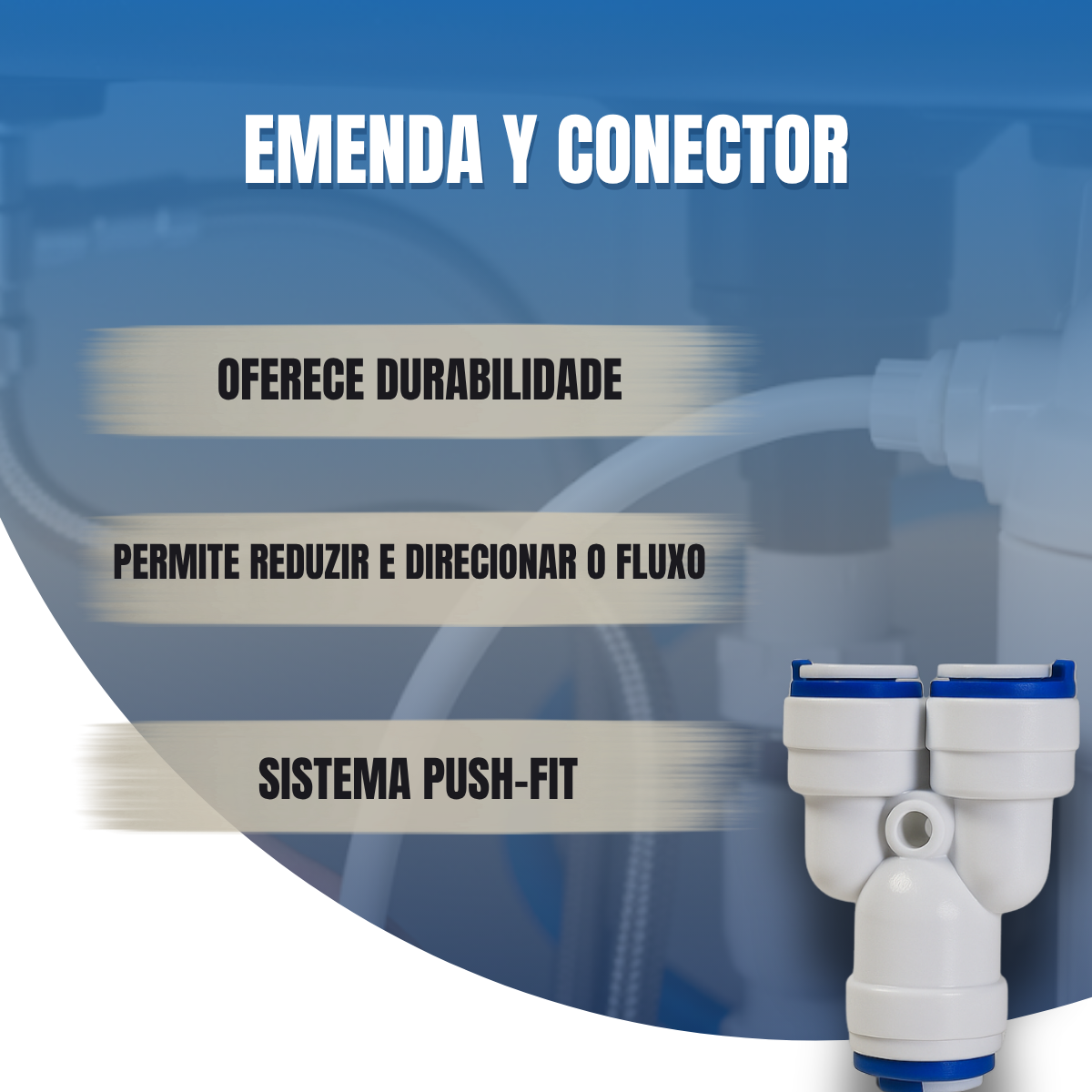 Emenda em Y 5/16 é a solução prática e segura para dividir uma linha de água em duas saídas sem perder pressão, ideal para instalações de filtros, purificadores, geladeiras com ice maker, bebedouros e sistemas de osmose reversa. Com sistema de engate rápido (push-fit), a montagem é simples: basta inserir a mangueira até o final e o travamento ocorre automaticamente, garantindo vedação confiável por meio de O-ring de qualidade.