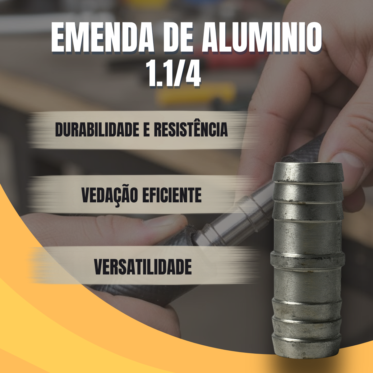 Emenda de Alumínio de alta resistência para mangueiras de ar e tubulações. Garanta uma união segura, sem vazamentos e à prova de corrosão. Compre agora!