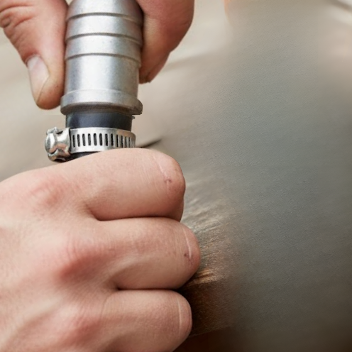 4. Aperto: Aperte as abraçadeiras de forma firme, mas controlada. O aperto deve ser suficiente para comprimir a mangueira contra o alumínio e impedir vazamentos, sem danificar a borracha.