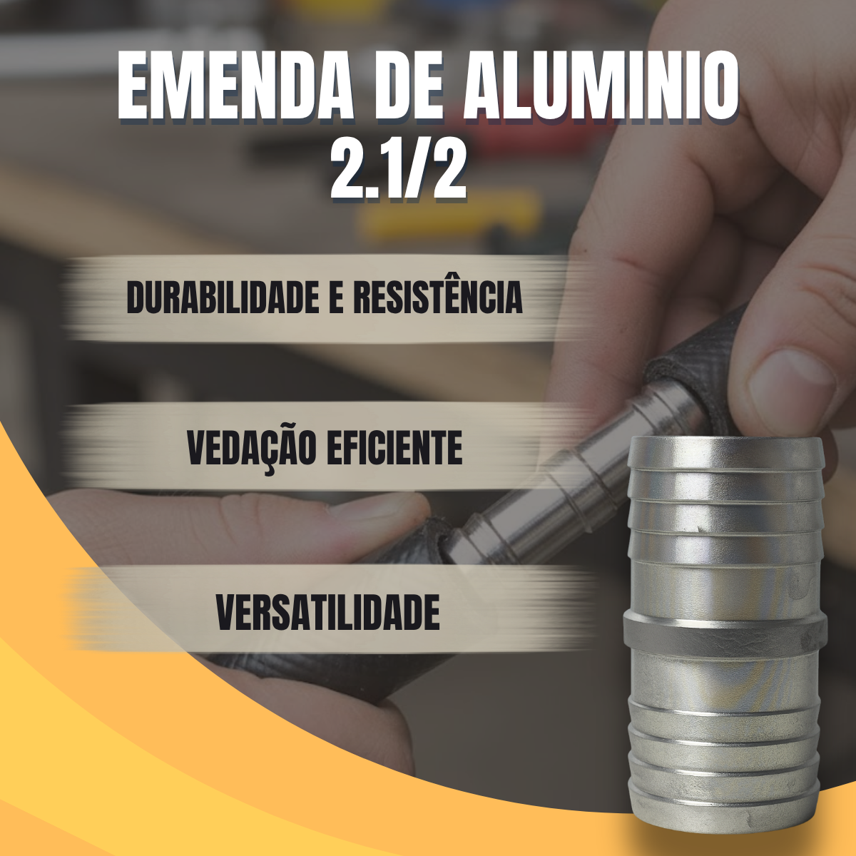 Emenda de Alumínio de alta resistência para mangueiras de ar e tubulações. Garanta uma união segura, sem vazamentos e à prova de corrosão. Compre agora!