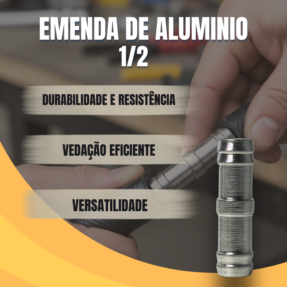 Emenda de Alumínio de alta resistência para mangueiras de ar e tubulações. Garanta uma união segura, sem vazamentos e à prova de corrosão. Compre agora!