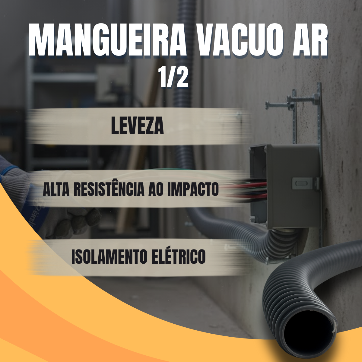 A Mangueira VACUO AR Corrugada é a solução ideal para sistemas que demandam extrema flexibilidade e leveza no transporte de ar, vapores, poeira e materiais leves sob vácuo ou baixa pressão. Sua construção corrugada de alta densidade, geralmente em PVC flexível, oferece uma combinação única de resistência ao amassamento e facilidade de manuseio. Projetada para ser altamente maleável, é a escolha primária em sistemas de ventilação, exaustão, aspiração industrial e residencial, podendo também ser utilizada como conduíte flexível para proteção de cabos elétricos ou hidráulicos.