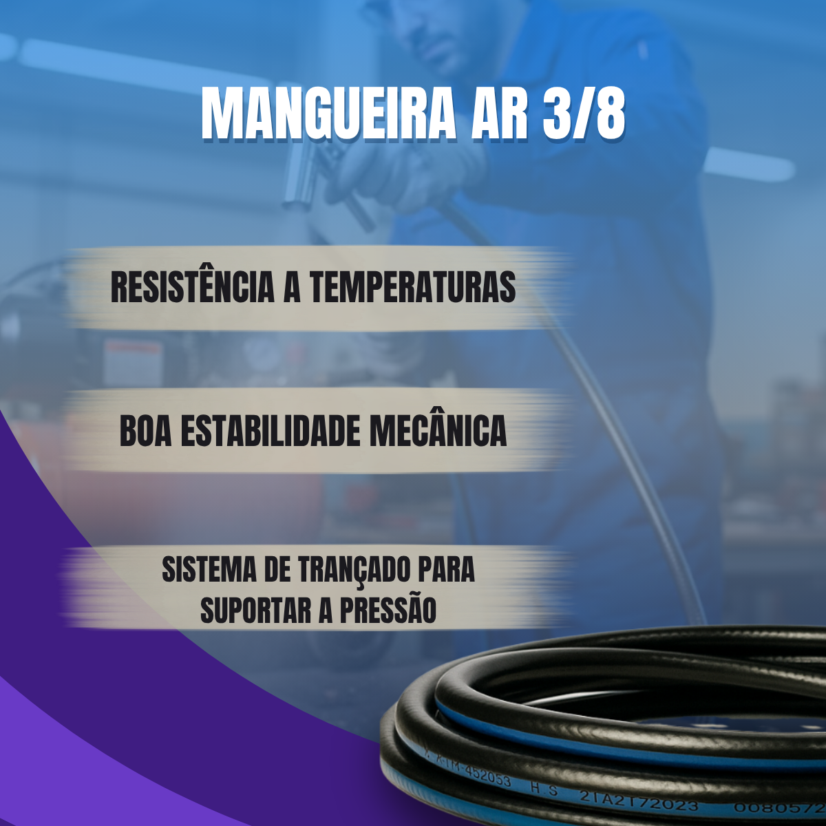 Mangueira Para Compressor Ar Comprimido Emborrachada Pneumática 3/8 Polegada 10mm Rolo 5mt Ar Água 300psi Flexível, Resistente e Alta Qualidade. Compre Agora!