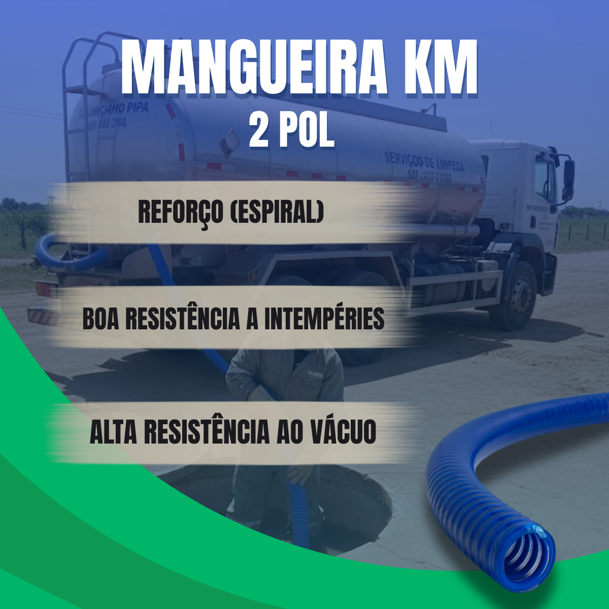 A Mangueira KM é uma solução robusta e versátil, indispensável para operações de sucção e descarga de líquidos e materiais granulados em diversos setores. Fabricada em PVC flexível com um reforço em espiral rígido (PVC) em cor contrastante (geralmente azul), ela oferece o equilíbrio ideal entre flexibilidade e resistência estrutural. Projetada para alto desempenho, garante performance no transporte de água, lama, efluentes e produtos agrícolas, sendo uma ferramenta fundamental na irrigação, construção civil e saneamento.