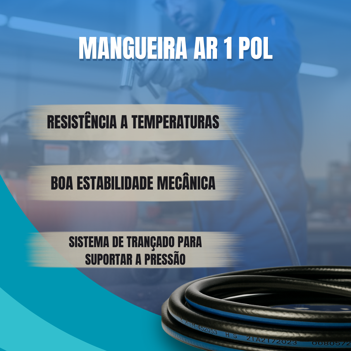 Seu material em PVC emborrachado premium garante alta resistência à pressão e longevidade, sendo uma ferramenta indispensável para oficinas, garagens e indústrias leves.