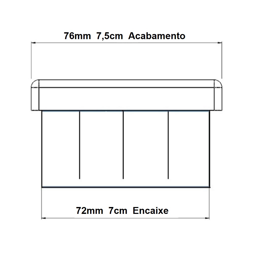 Diâmetro do Acabamento: 3" polegadas - 76 milímetros - 7,5 centímetros;