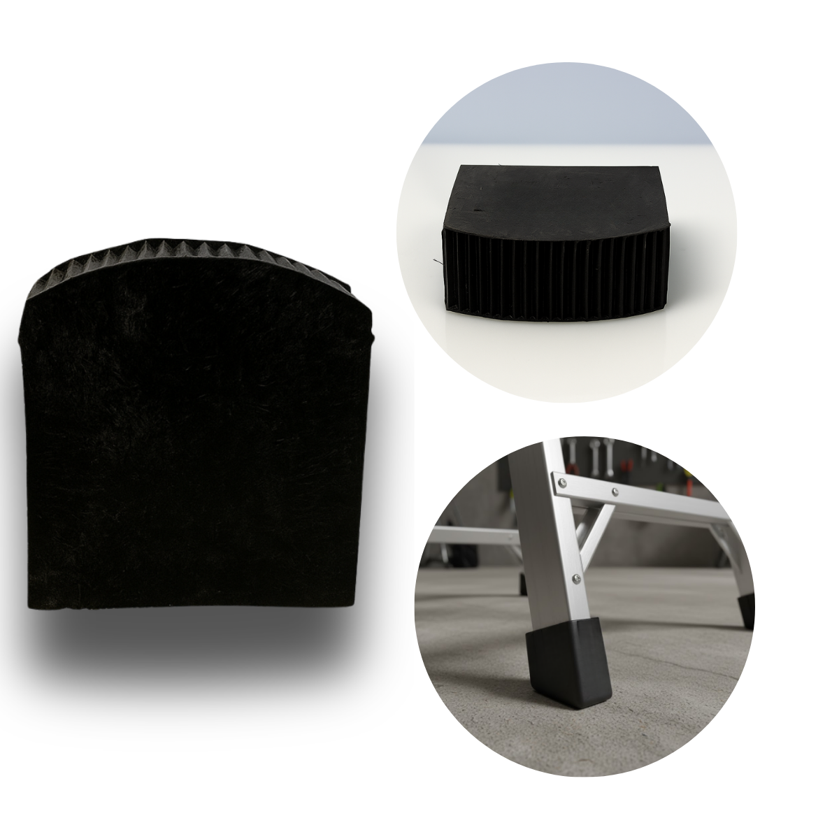 - Proteção de Piso: Atua como um amortecedor e barreira protetora, evitando que as extremidades metálicas ou de fibra da escada risquem, amassem ou danifiquem superfícies sensíveis como madeira, porcelanato ou pisos vinílicos.
