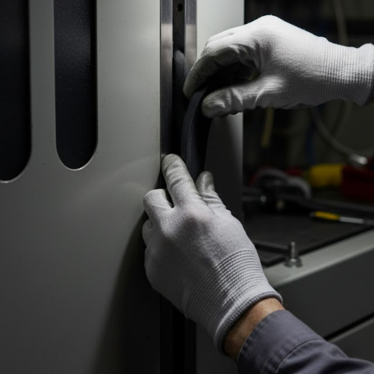 5. Substituição: Inspecione o perfil regularmente. Caso ele apresente sinais de ressecamento, rachaduras profundas ou perda significativa da elasticidade (endurecimento), o componente deve ser substituído para garantir a eficácia da vedação e do amortecimento.