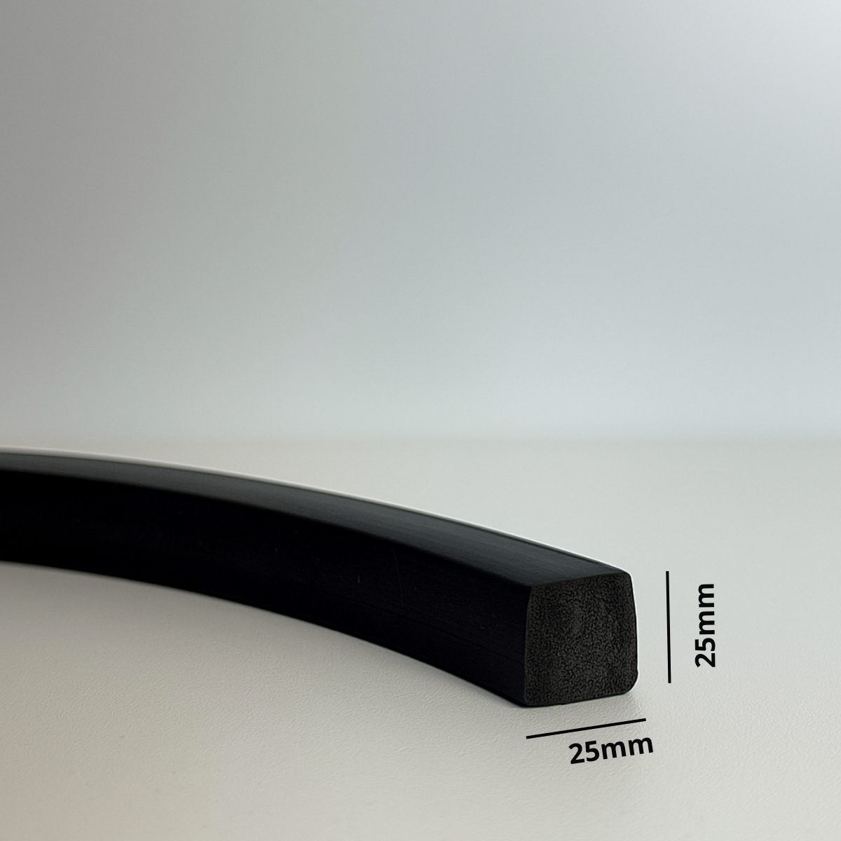 Perfil de Borracha 25x25mm Para Vedação Esponjosa Macia 1mt