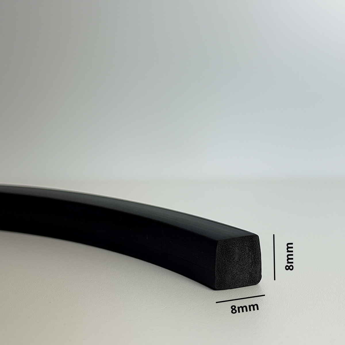 Perfil de Borracha 8x8mm Para Vedação Esponjosa Macia 10mt