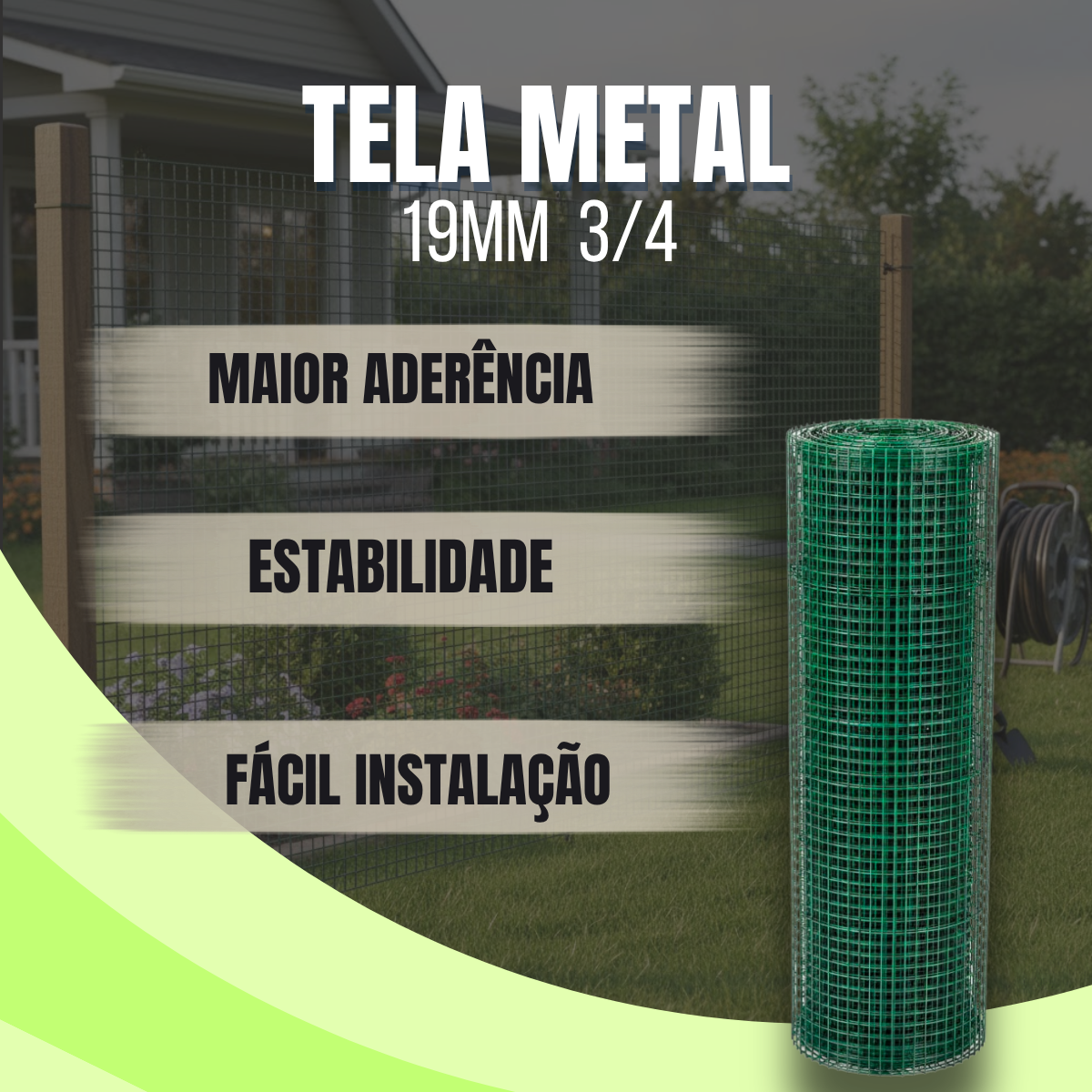 Tela Metal Revestida Verde Jardim Gaiola Cerca 19mm 1mtx1mt