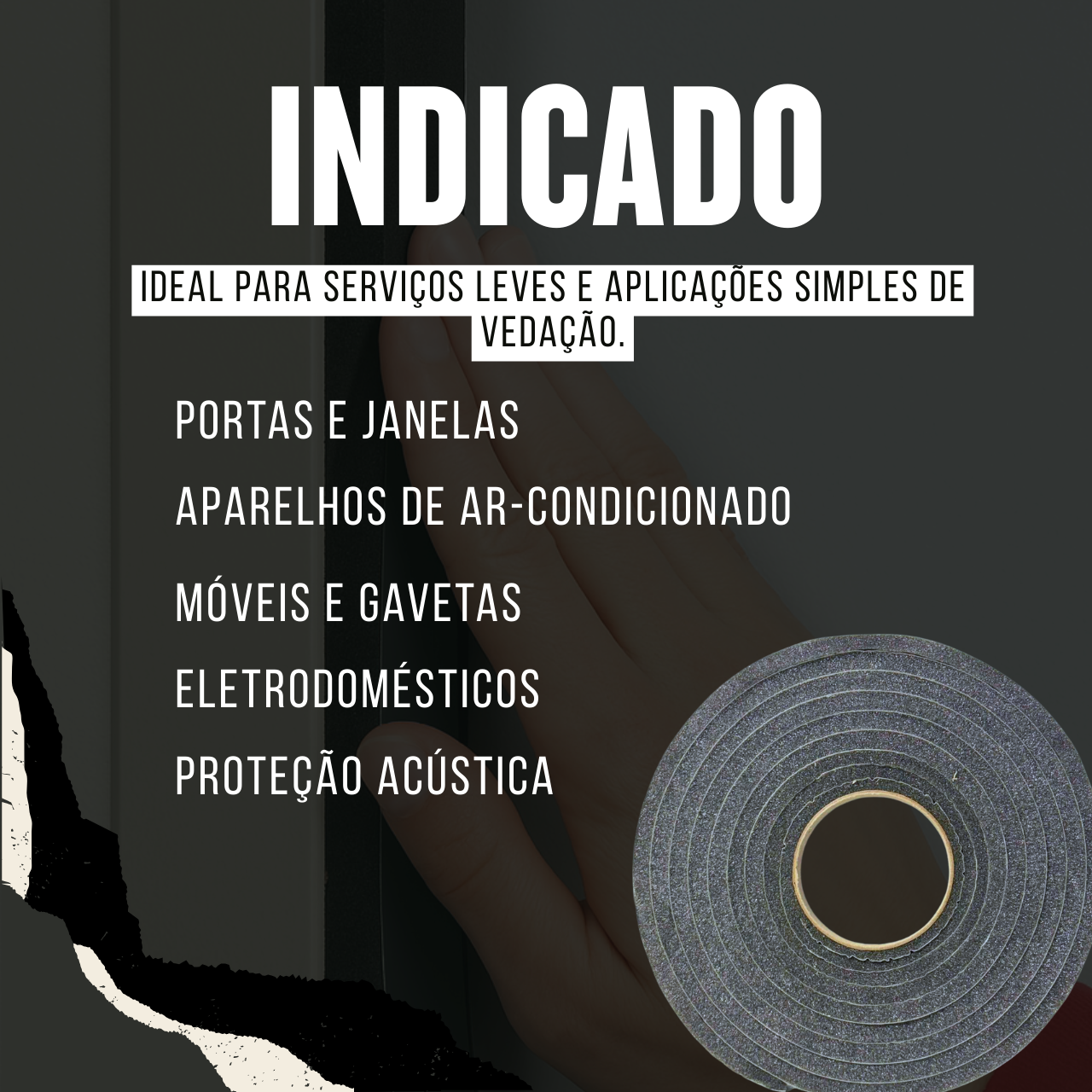 As fitas de vedação são eficientes podendo ser utilizadas em muito seguimento desde da Industria ao uso doméstico como Portas e Janelas, Paneis, Maquinas, Automotivo, Aparelhos Eletrônicos, Ar Condicionado, Apoio e Acabamento de Moveis, Refrigeração, Caixas e Caixote, esquadrilhas de alumínio e etc.