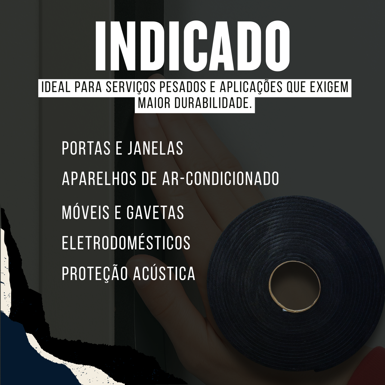 As fitas de vedação são eficientes podendo ser utilizadas em muito seguimento desde da Industria ao uso doméstico como Portas e Janelas, Paneis, Maquinas, Automotivo, Aparelhos Eletrônicos, Ar Condicionado, Apoio e Acabamento de Moveis, Refrigeração, Caixas e Caixote, esquadrilhas de alumínio e etc.